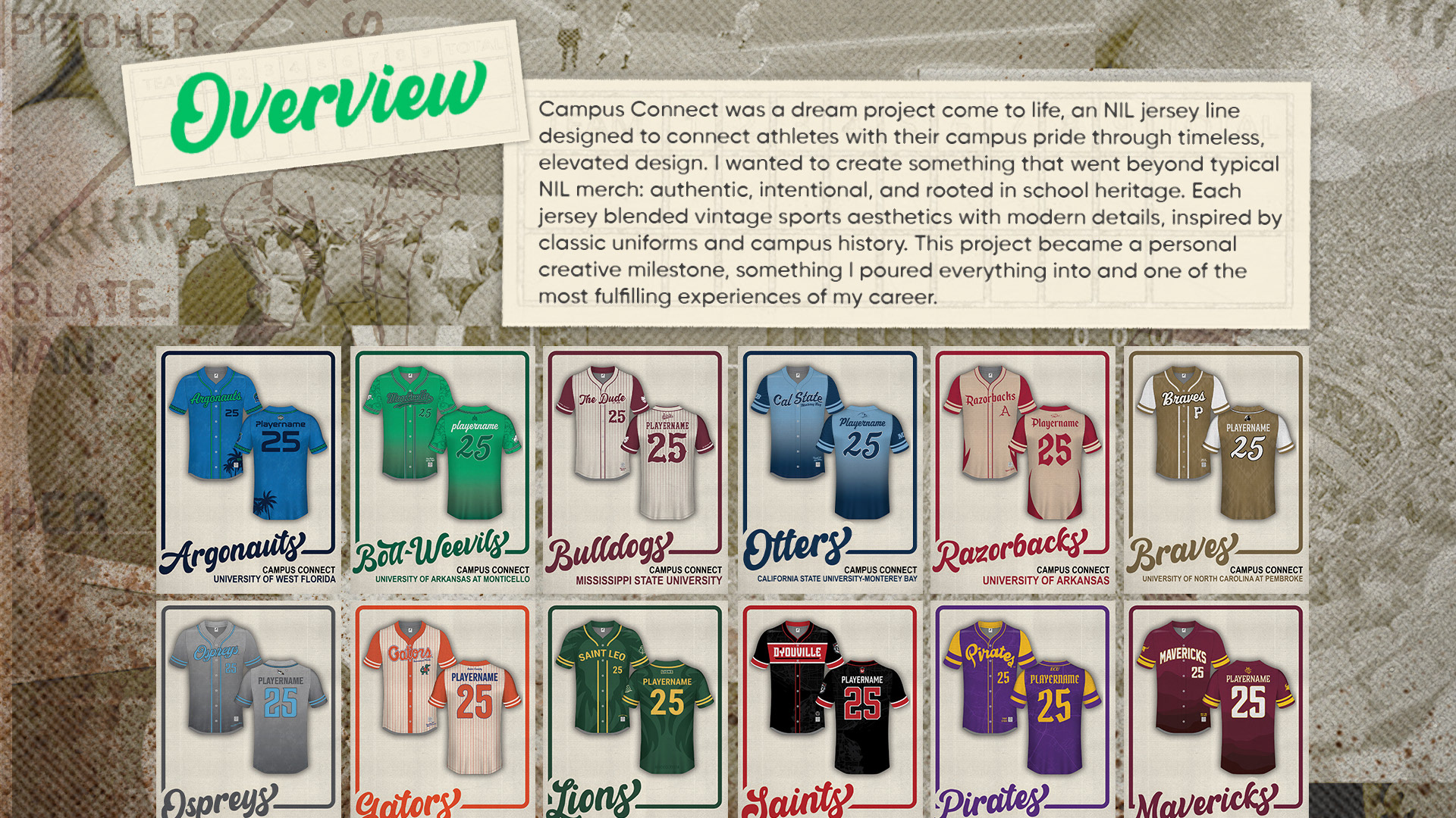 A nationwide NIL jersey initiative designed to connect athletes to their campus pride through thoughtful, elevated design. Led creative direction, art direction, and campaign rollout from concept and design to production and photography.