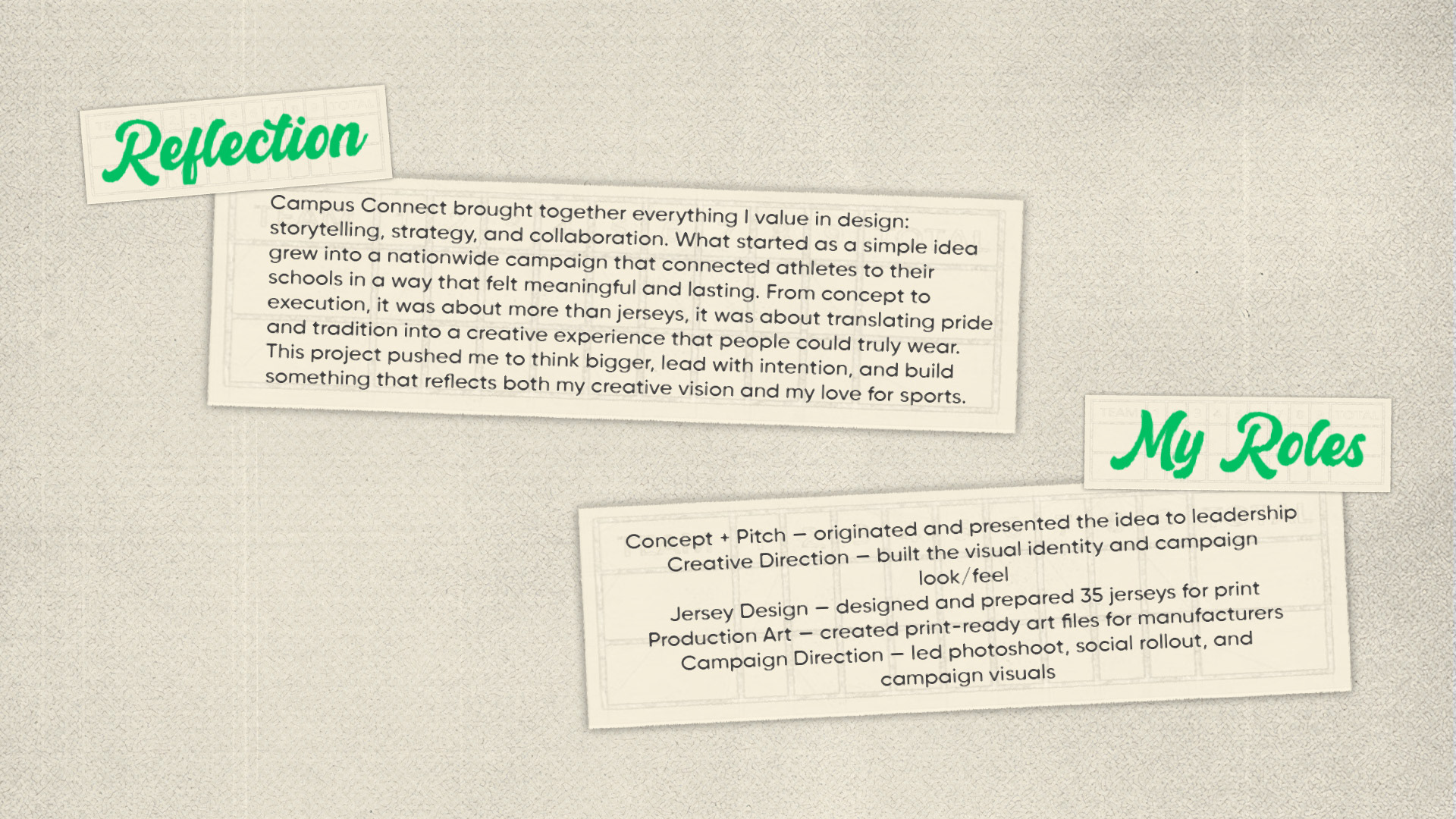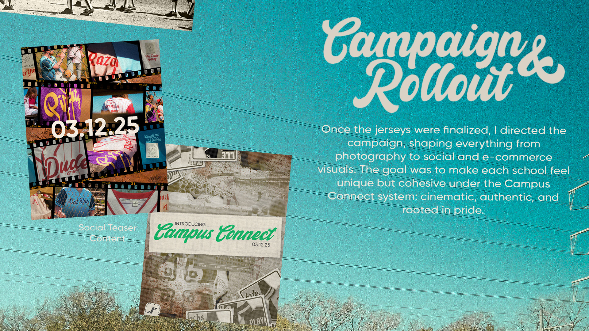 Directed and edited launch video introducing the Campus Connect jersey line. Created for the campaign landing page, this piece set the tone for the entire rollout, cinematic, nostalgic, and rooted in campus pride.