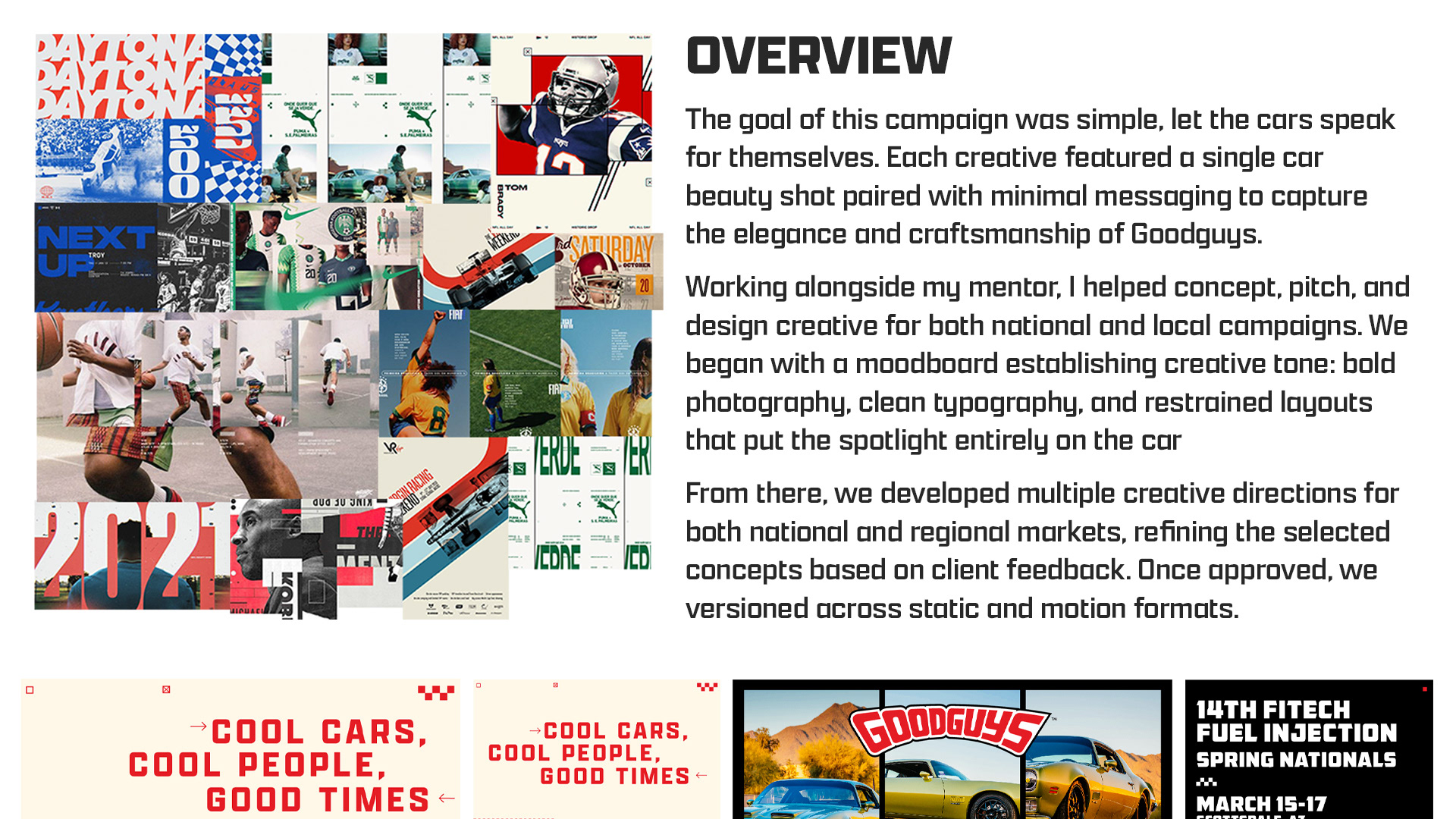 A campaign series created for Goodguys to promote their national and local events. Designed to celebrate classic car culture.